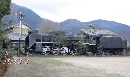 公園に展示されているデゴイチ(D51)を夢中で撮影するパパを撮影してみたw