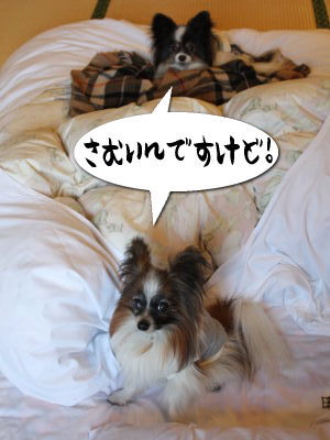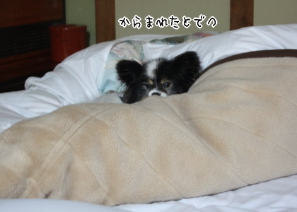 お部屋に戻るとお布団が敷いてありました。さっさと寝床に入るあっクンw