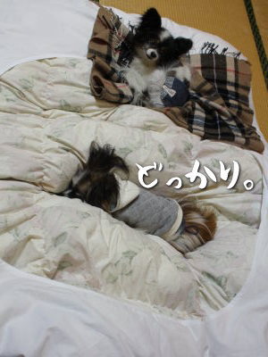 同じお布団で仲良く撃沈する風あらにカメラを向けたらあっクンが…