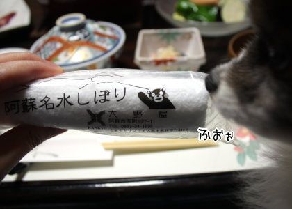 見て見て~('-'*) おしぼりにもくまモンが♪