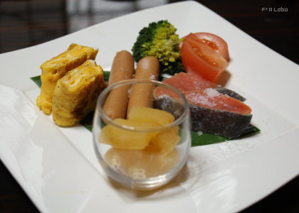 朝食の一部です。こちらの鮭やウインナーなどを~