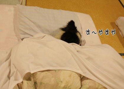 ふかふかお布団(ママの足元)で朝までぐっすり!