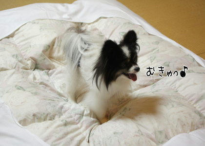 ふかふかお布団に大はしゃぎのあっクン( *´艸`*)