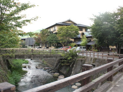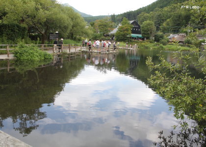 迷宮館を出て、旅館の前を川沿いに真っ直ぐ歩くと金鱗湖です。