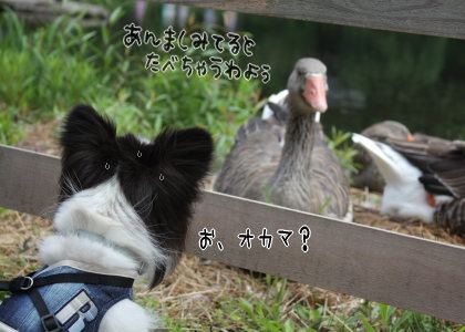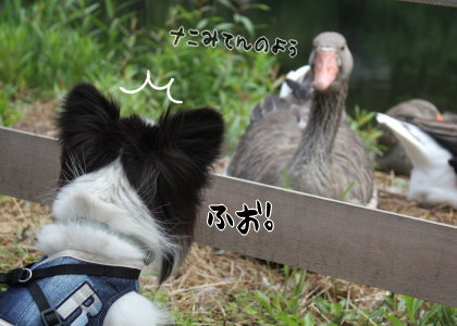 ガチョウがはっきりと動いたその瞬間、吠えて立ち向かったのはあっクンでした。