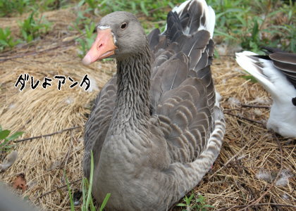 寝ていたはずのガチョウさん…どうやら私たちが起こしちゃった?