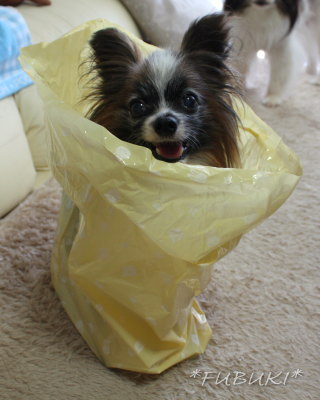 いただいたプレゼントの包装袋に自ら入りご満悦~( ´艸`)