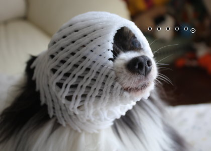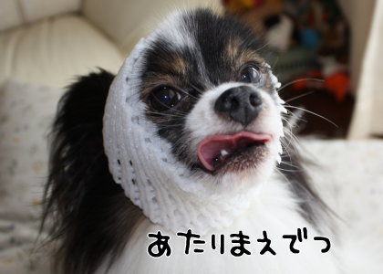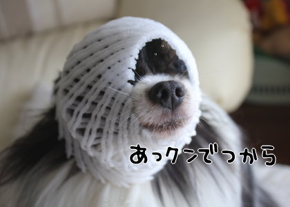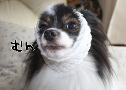 ( *´艸`*) そうですね。ちょっと窮屈なスヌードですね♪あらしは被り物苦手(怖い)ので暴れることもできず固まってるんですよ(^w^) 風吹はガウりますね~~。でもご褒美をチラつかせると頑張ってくれますけど(笑) イヤがられても可愛いから、どうしてもやめられないんですよね~~( ̄∇ ̄*)ゞえへへ。