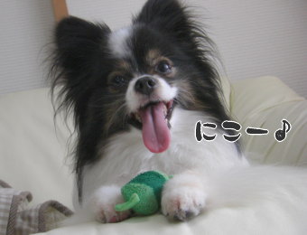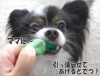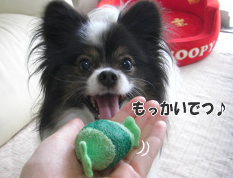 ボール以外のおもちゃだと、もっぱらコレばっかりですよ(^-^) ほんっとに大好きみたいですぅ♪もう何度も洗濯して、そろそろピコピコ音が怪しくなってきてるんですよね~・・・このおもちゃ、頂き物なのですが、どこで入手されたのかしら(^.^; 新しく買ってあげたいのですけどね~。ママとの遊びも大好きみたいで・・・飽きずにいつまでも遊ぼうとするので、私の方が先にバテてしまうんです~(;^ω^A ついてゆけなくて申し訳ないのです・・・(汗)