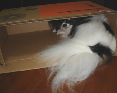 段ボール箱を倒してやったらさっさと潜り込んでたよ~。普段は、風吹が