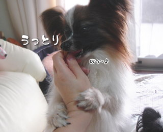 おやつに心を奪われたところと風ママさんの手にしがみついて、うっとりしてるところが特に~!