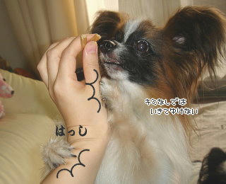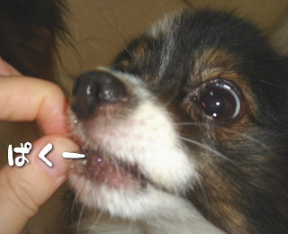 tamieさんのおやつ、大人気ですよ~~♪こんなに飛びつくなんて、本当に美味しいんですね(´ー`) 風吹のおやつに対するまなざし、ほんとにそう言っているような気がしてしまいます( *´艸`*) とにかくおやつ以外は眼中にナシで・・・。あらし、かぶりつく前にまずは舌で確認・・てとこでしょうか(笑)