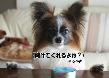 おやつケースに手は届いたけれど、自分では開けられない風ちゃん