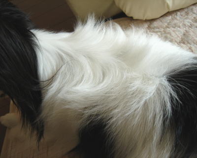 背中の分け目、気になってたんです。みんなあるのかなぁ?って。鈴も背中にくっきり分け目があります。そこから綺麗に左右に分かれてますよ。毛質がストレートなんで余計に目立つかもしれません。