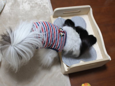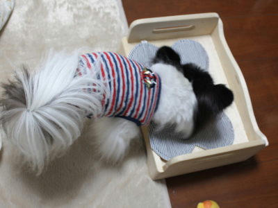 あっクンのリラックスゾーンなのに、恐怖のカーペットで近寄れないのはかわいそう。