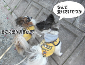 どうしても車の通る道でのお散歩になってしまうんですよね~(^.^; 我が家もマンション出て、右へ行っても左へ行っても車が通ります。大きい通りの歩道が散歩のメインでしたが、そこを少し行くとこの川沿いに入ることが出来るようになりました(^-^) このコースならなんとか車が少なくて済みそうです♪小学生か~~~(^・^;) これは時間帯ですかねぇ・・・。出来ればあまり囲まれたくないですよね。わかります。この壁、あらしまでジャンプするほどなので、上に何かあるのかも・・・(¨? 今度じっくり見てみようと思います~。最後の写真、皆さんのご想像で・・・(´ー`)