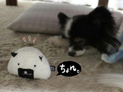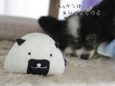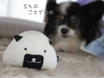 この“おむすびわんこ”のおもちゃ、きっとあっクンが置いたのでしょう。