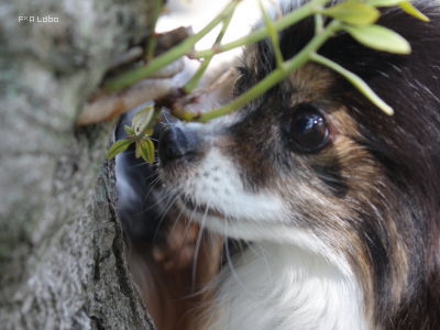 ツツジの植え込みに向かう途中…新芽が気になるあっクン( *´艸`*)