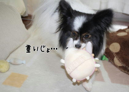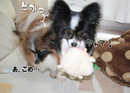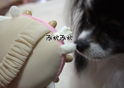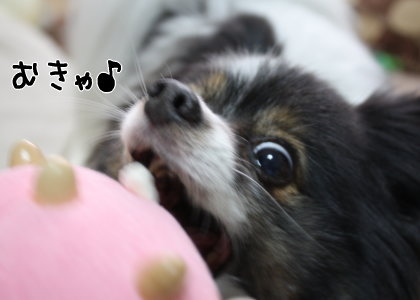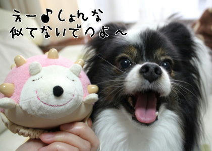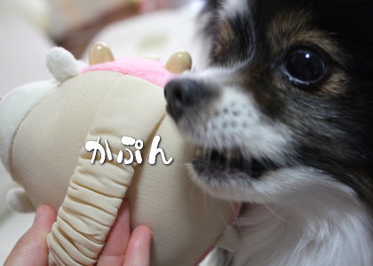 丸い顔も似てますよね(゜m゜*)ぷっ 他のおもちゃよりコレに夢中になるとは予想外でした(笑)でもいつも気に入って遊ぶあめちゃんみたいに、手軽に遊べない感じなので早々に放置されてましたよ(^w^) チャポ丸くんも一人で上手に遊べる子なんですね♪スマイルエッグ、そうなんですよ~ニオイでわかっちゃうみたいで、高いところに避難させているのもバレバレでした。開封後はニオイが薄くなったのかあまり見向きもしなくなりましたが、あらしが遊ぼうとするとやっぱり気になるようで(オレのもの!って気持ちが働くのか?)横取りに走っています( ̄∀ ̄*) 長いこと風吹がおもちゃに夢中で遊ぶ様子を見ていなかったので嬉しかったです~♪