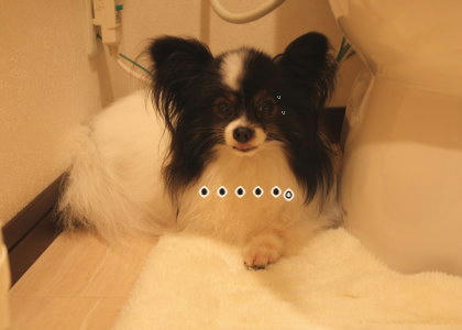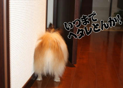 ママがトイレを済ませて出てしまっても、動こうとはしないあっクン。