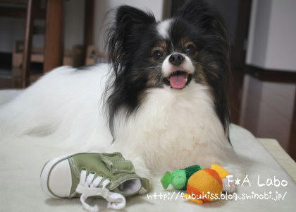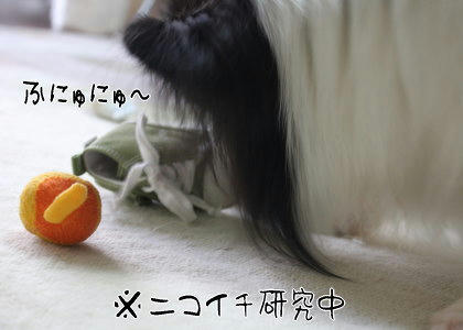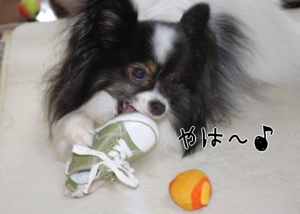 履かせちゃいました(^m^)ゞ ちょっとイヤがっていたんですけどね、お利口~~!って褒め倒して強引に! チャポ丸くん、30分で破壊したんですか!…どうやったら壊せるのーー(゜▽゜;) ニコイチはあらしなりに考えてるみたいですよ。小さいものなら強引に二個とも口に詰め込んで「ぶがふが~」って微妙にムセながら持ち運んでます(笑)その場面がなかなか激写できないんですよね~~(´ε`;) 狙ってるんだけどなぁ…。