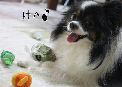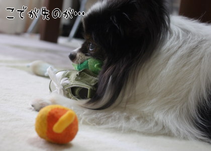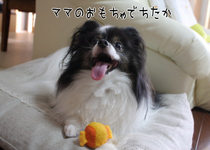 宝物、惜しげもなく差し出してくれましたが、貸してはくれませんでした( ̄ω ̄) 見せてくれただけ~~。「ありがとう~♪」って受け取ろうとしたら咥えた口元に力を込めて引っ張り返されましたからね( ̄m ̄〃)ぷぷっ
