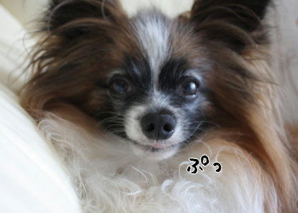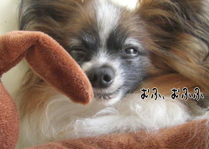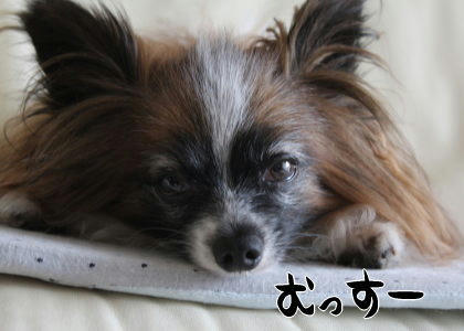 優越感顔は、ぱぴークンもなりますか!( *゚艸゚*) 細いマズルだからちょっと寝ぐせが付くと口角が上がって笑って見えますもんね(^w^) あらしのマズルは丸いから、フツウに凹むだけです(笑)そそ!シュワッチで寝てたり、何かに寄りかかっているとこうなってます~(゜m゜*)ぷっ