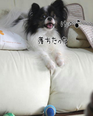 あめちゃんにしろたまごちゃんにしろ、どの程度カプカプすれば音が出るって、感覚でわかるみたいで、あまり強く噛むことはしないんですよ。ボールも、咥える転がす追いかける…あんまり強くは噛まないですね~。あらしの場合はベロを添えて、むしろ優しく咥えているような( ̄ω ̄) とにかくおもちゃは大切みたいですよ(´ー`) レスキューごっこは、声を掛けるよりも、あのギリギリを楽しんでるところを~横からエイ!って落としてやったりしていますよ( ̄∀ ̄*) ちょっとイジワルだけど反応が面白くて可愛いものでつい…(^m^)ゞ