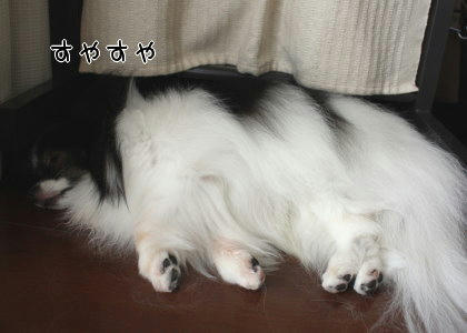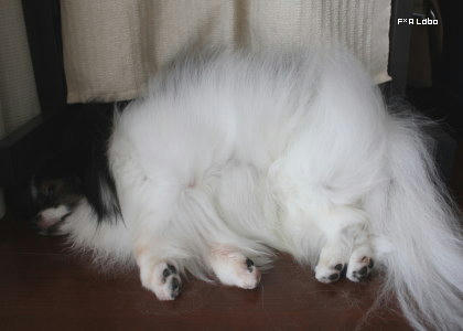 ブラッシング途中だと言うのにお昼寝態勢に入ってしまったあっクン…