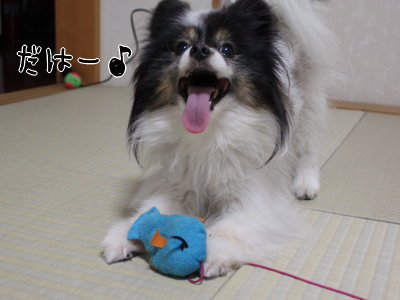久しぶりに“犬じゃらし”=魚釣りのおもちゃを出してあげました♪