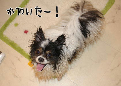 セルフドライで暴れ過ぎて「ゼェハァ」しているだけって感じですけどね~笑顔ですよね(笑)あらしはお手入れ中すごくおとなしいですよ~!くすぐったくてピクン!って手を引っ込めることはありますが、基本的に「まな板の上の鯉」状態です(^w^) 隼くん、ブラシ嫌い?まだ今なら大丈夫だと思いますよ!風吹も昔はブラシとか歯磨きとか大嫌いで、逃げてばかりいました。でも散歩の後とか必ずブラッシングして(ちょっと撫でるだけ)べた褒めして~って繰り返していたら、今現在、ブラッシングは嫌いじゃない状態になってますよ(^-^) 歯磨きも、今も嫌いですが、頑張ってガマンしてやらせてくれます。その子の性格にもよるかもですが、地道に馴らして行くことで克服できると思います♪