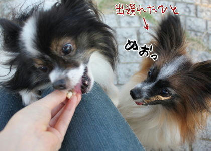 さっきのおやつの一件は根に持ったりしなかったのだね(´ー`)