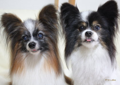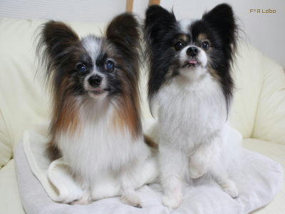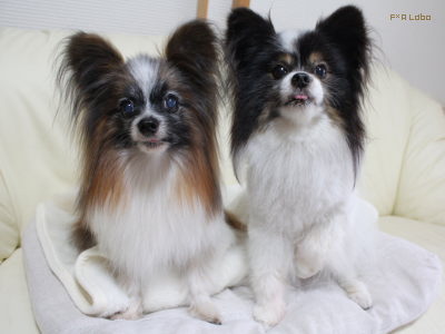 カメラ目線のためにおやつをチラつかせているので二人してチロってます。