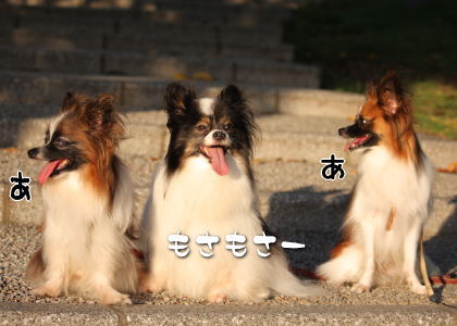 風吹も元気にしています~(´∀`*) こちらこそご無沙汰していてスミマセン・・・読み逃げしてます(*´ェ`*)ゞ そうなんですよ~~本当に偶然!「え?え?えぇぇ??」って感じでした(笑)3ショットの風吹と蘭丸くん、シンクロ加減がおかしくて~( *´艸`*) たまたま公園で出逢った知らないわんこにまで威張ってました・・・恥ずかちい[壁]_<) でも写真となると、モデル魂がうずくようです(笑)