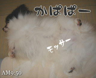 ギャハハー(^◇^)2人とも可愛過ぎまつ(^v^)安心しているからこその「かぱー」でつね(*^^)v我が家のリリィちゃんも結構「おっぴろげ」の事があるのですが一応レディなのでやめて欲しいな、と思う母です。
