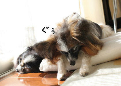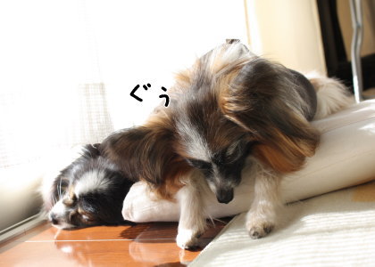 でしょうね!いつもは自分の近くにあらしが寝るのを嫌うのに、ポカポカ