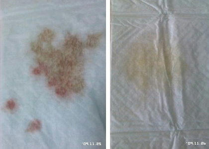 昨夜の風ちゃん、残尿感を伴ったひどい血尿が出てしまいました。