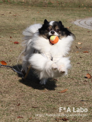 こちらはあっクンのボール持来コースを横切る風ちゃん。