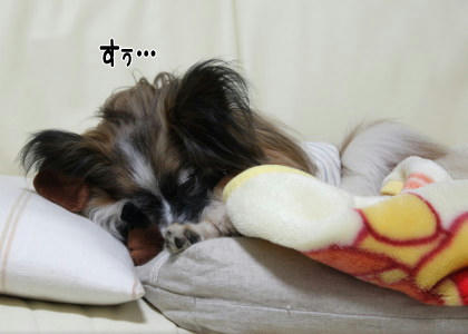 残尿感…いつもと違う感覚に、自分でもどうしていいのかわからなかったのかもしれません。切ない声で訴えても、あらしに八つ当たりしても治まらなくてトイレへ駆け込む…チッコしてるのにまだチッコが出そう…わけわからん!そんな状態だったのでしょうね…。こんな時、わんことしゃべれたらどんなにいいかと…毎回思うことです(^.^; 今日はもう落ち着いたままで、ひどい血尿も残尿感もなく熟睡態勢です。もう朝まで大丈夫だと思います。