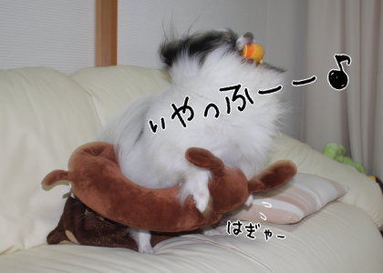 ソファ上に置くと必ずあっクンの舞に巻き込まれてしまう本官さん…