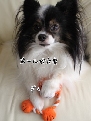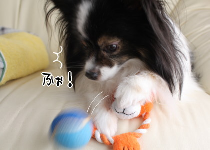 片手でおもちゃ、片手でボールをしっかりキープしています(゜∀゜)