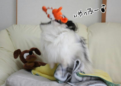 おもちゃの顔面をキープしたオテテが萌え~~(〃ー〃)