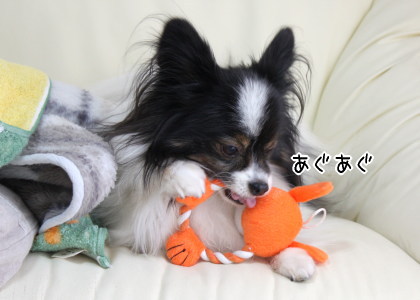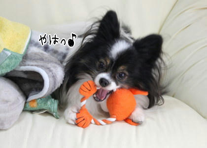 あらしの遊び方は独特なのかもしれませんね~私にとってはあらしの遊びがパピヨン基準なんですけども(爆)オテテはもう食べちゃいたいくらい