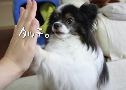 結局おやつは一回ももらえずそれどころかタッチ芸までさせられる始末(笑)何しに来たんだかね~(≧3≦) =3 いやちゃんと構ってあげたよ(゜m゜*)ぷっ