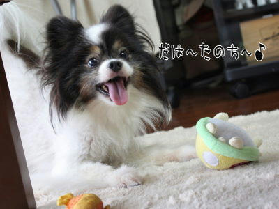 楽しく笑顔で過ごして欲しくて、新しいおもちゃを出してあげることにしました。