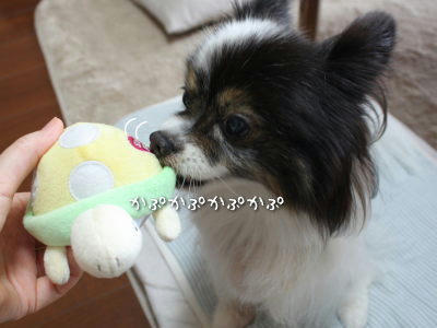 なぜか甲羅の縁を小刻みにカミカミするあっクンw