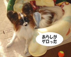 今朝方、あらしが嘔吐しました。あらしの嘔吐にはもう慣れっこ。