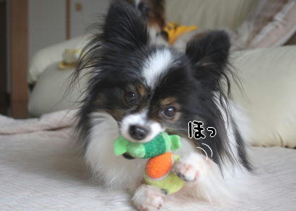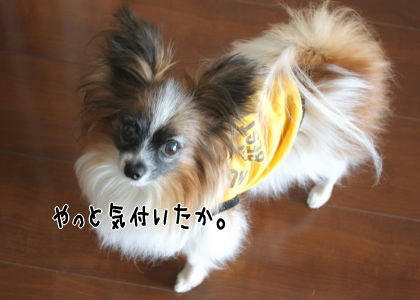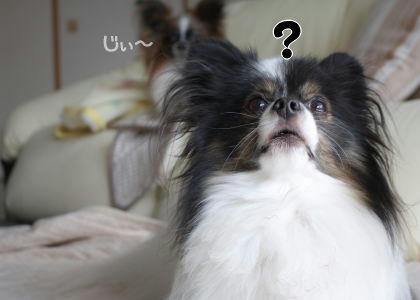 ・:*ゞ(∇≦* ) 確かにジョーズのテーマが似合いそうな場面かも!いつもならソワソワ落ち着きなくなって、フードテーブルを掘り掘りしてみたり、おしゃべりしたりしてアピールするのに、この時はただひたすら熱視線ですよ!私があらしと戯れていたから遠慮したのかも(^.^; 「あ、ごはんか~」って気付いた瞬間にいつも通りのソワソワが炸裂してました~!