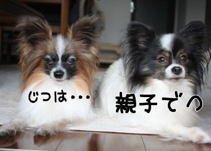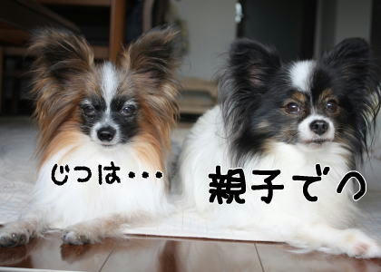 若い頃の2匹はそれこそ全然似てなかったんですよ。でも年を取るにつれて段々と似て来ましたね~~!わんこ飼いさんが見ると親子かな?ってわかっちゃう方も多いけど、そうでない人には「親子です」って言っても、色が違うのにね~!とか、子供の方が大きい!って驚かれたりします(^.^;