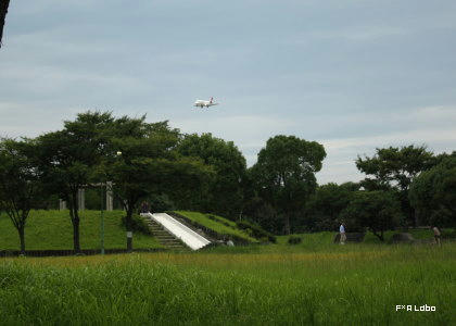 空港の傍なので着陸態勢の飛行機が見えます。